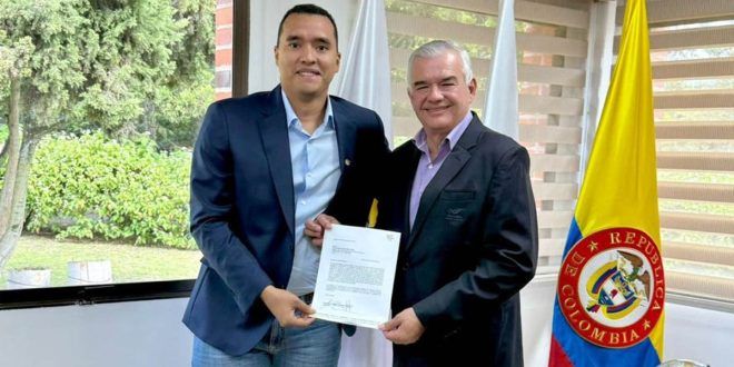 Ibáñez en compañía de funcionarios gubernamentales en uno de los momentos en los que ha dejado evidencia del trabajo realizado al frente de la Federación Colombiana por el reconocimiento deportivo del poker