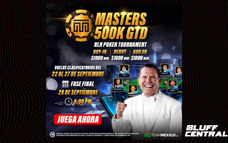 Este lunes 22 de septiembre inició la acción con los vuelos clasificatorios del Masters 500K GTD, un torneo de No-Limit Hold’em que promete reunir a lo mejor de la escena nacional. Con un buy-in de $1.000 MXN, rebuy y add-on por el mismo monto, este evento se perfila como una nueva gran oportunidad para los jugadores que buscan asegurar un lugar en la fase final y competir por una bolsa garantizada de $500,000 MXN.