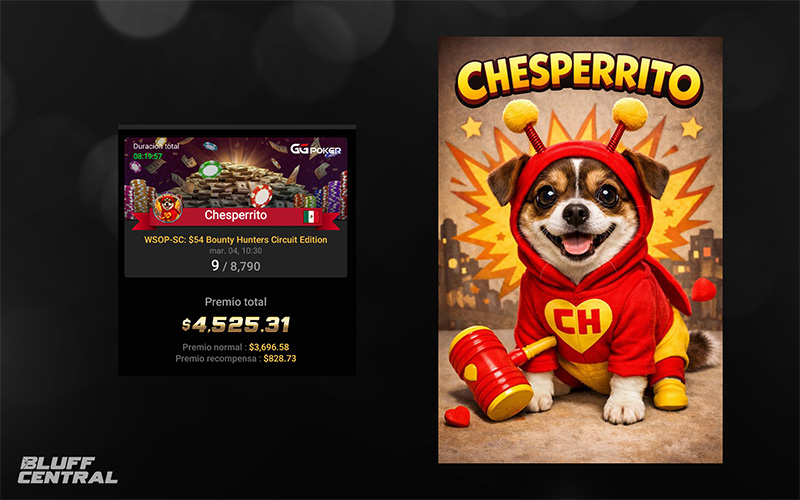 El grinder mexicano Efrén Martínez Amador 🇲🇽, conocido en las mesas como «Chesperrito» estuvo muy cerca de conseguir uno de los podios más prestigiosos del poker online en un Bounty Hunters Circuit Edition, que garantizó un pozo total de US$300,000, rebasado con creces gracias a la masiva participación en tiempos de las WSOP Super Circuit Online en GGPoker.