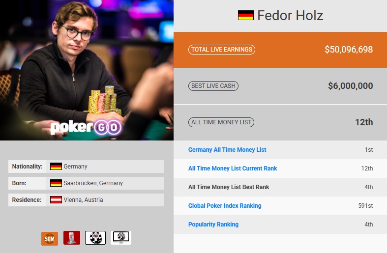 Fedor Holz 🇩🇪 irrumpió en la escena internacional a mediados de la década pasada, primero como fenómeno online bajo el alias “CrownUpGuy” y luego como uno de los jugadores más dominantes y temidos en torneos high roller en vivo.