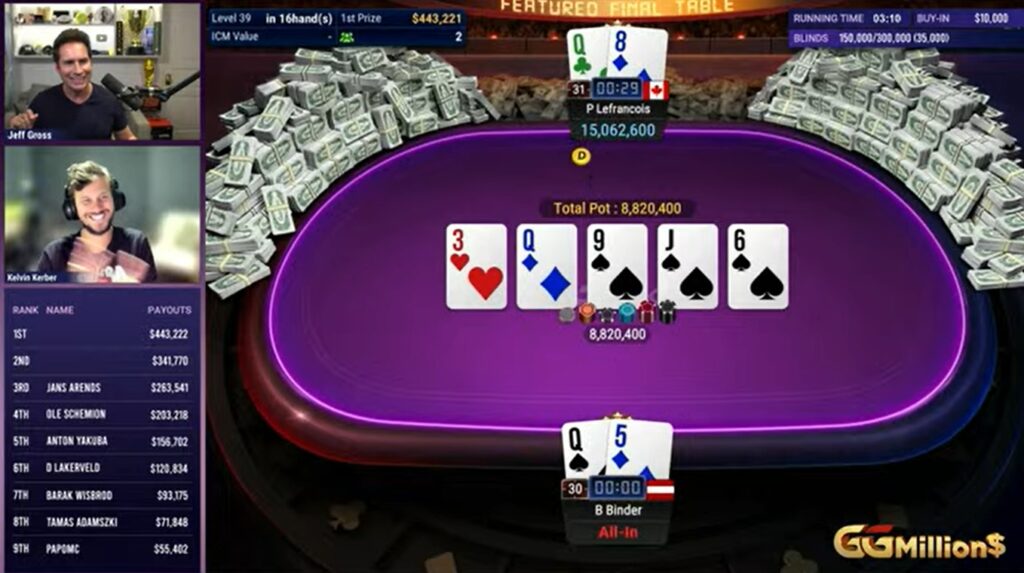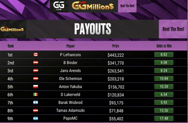 Lefrancois consiguió su primer título en el High Roller más reconocido de la parrilla de GGPoker, con una victoria sobre el favorito entre los finalistas
