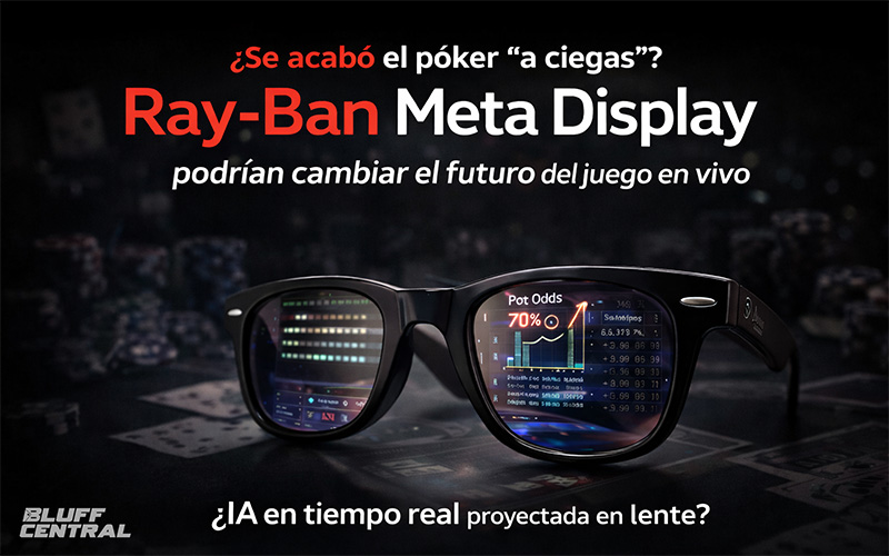 Un display integrado en el lente, cámara 12 MP, control por gestos con banda neural y conexión WiFi 6. Las Ray-Ban Meta Display ya están a la venta en Estados Unidos por alrededor de US$800 y aunque hoy no están diseñadas para el poker, su potencial abre una pregunta incómoda en general y es… ¿qué pasará cuando la inteligencia artificial pueda analizar una mesa en tiempo real desde tus propios ojos? Quédate porque en BluffCentral te lo contamos.