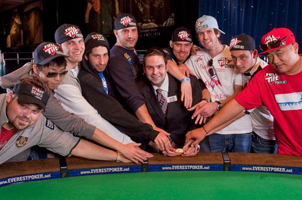 La mesa final de las World Series of Poker (WSOP) de 2010. El nuevo y peculiar sistema se mantenía, por lo que el torneo finalizó cinco meses después de su inicio. «November Nine»